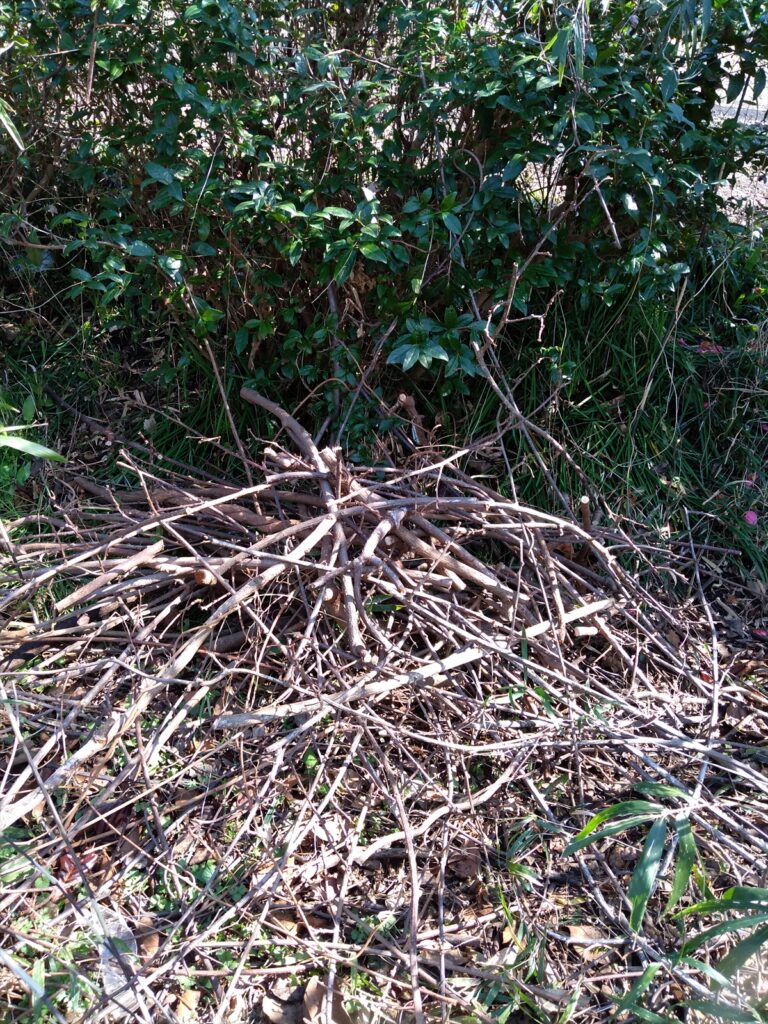 掘り起こした枝は、レシプロソーで細かく切ってまとめて処理しました。