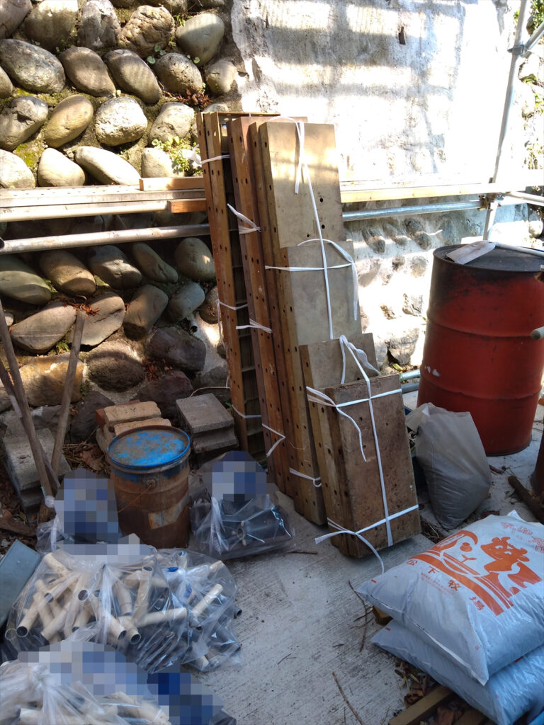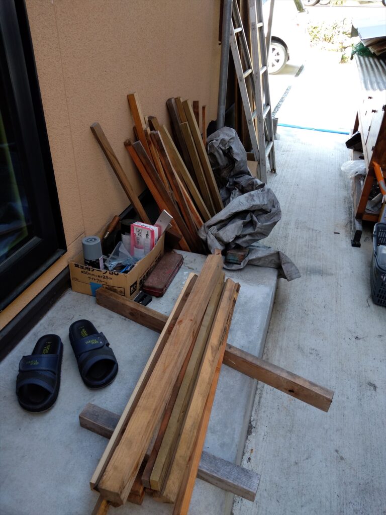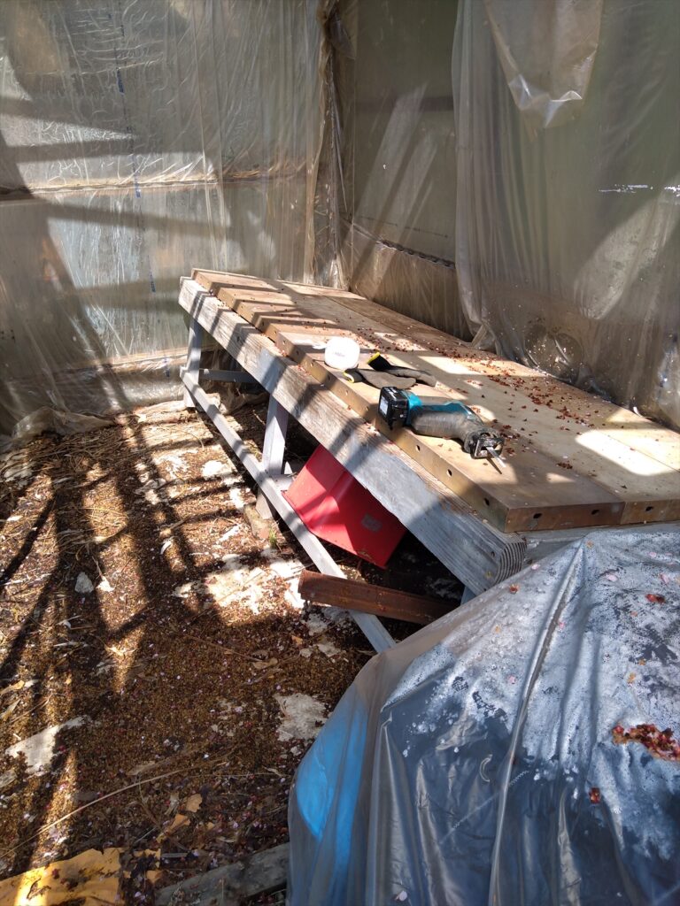 ・温室内の木製台はレシプロソーとバールを併用して半分まで解体