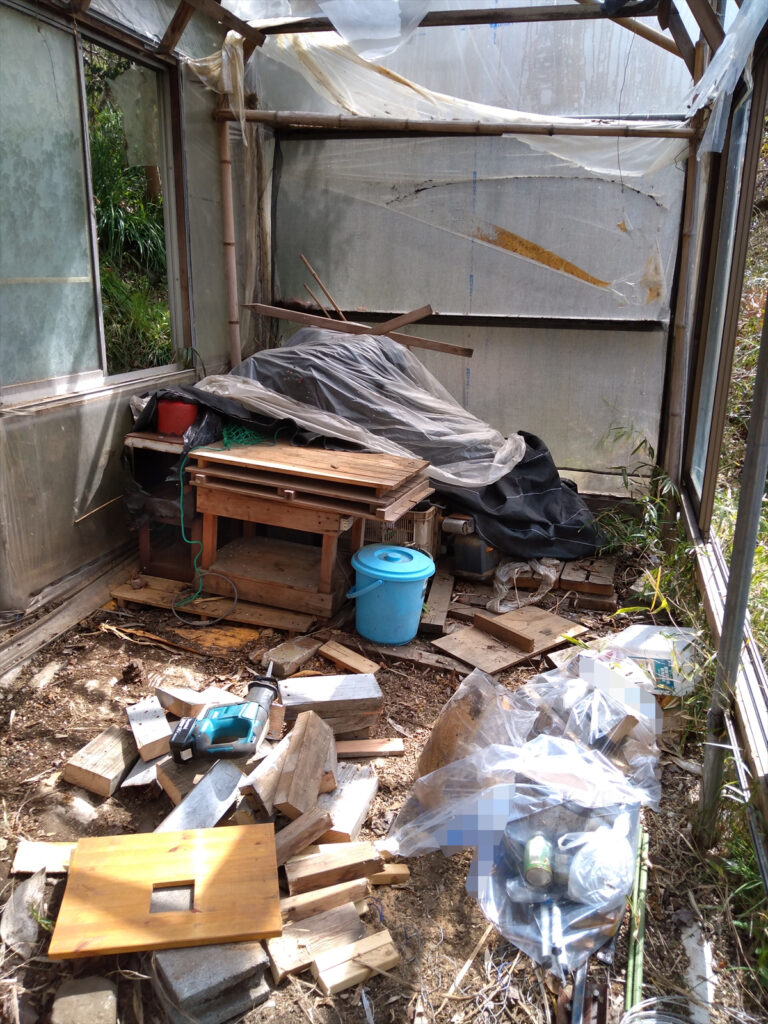 木製台を完全に解体できたことで、温室内の片づけがようやく次の段階に進みました。